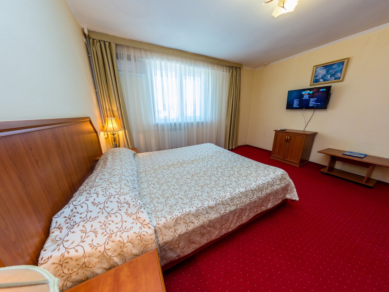 - Кафе «Buon appetito» (08:00-23:00) - с 08:00 до 11:00, континентальный завтрак (сырная, овощная, колбасная нарезка, сосиски, омлет, кисломолочные напитки, сухие завтраки, выпечка); с 11:30 до 23:00, итальянское меню (паста 3 вида, салаты 3 вида, супы, лазанья, равиоли, пицца 3 вида, соусы); горячие напитки (чай, кофе - в кафе установлены кофемашины с зерновым кофе (эспрессо, американо, капучино); прохладительные безалкогольные напитки и алкогольные коктейли на основе виски, джина, водки, рома, текилы