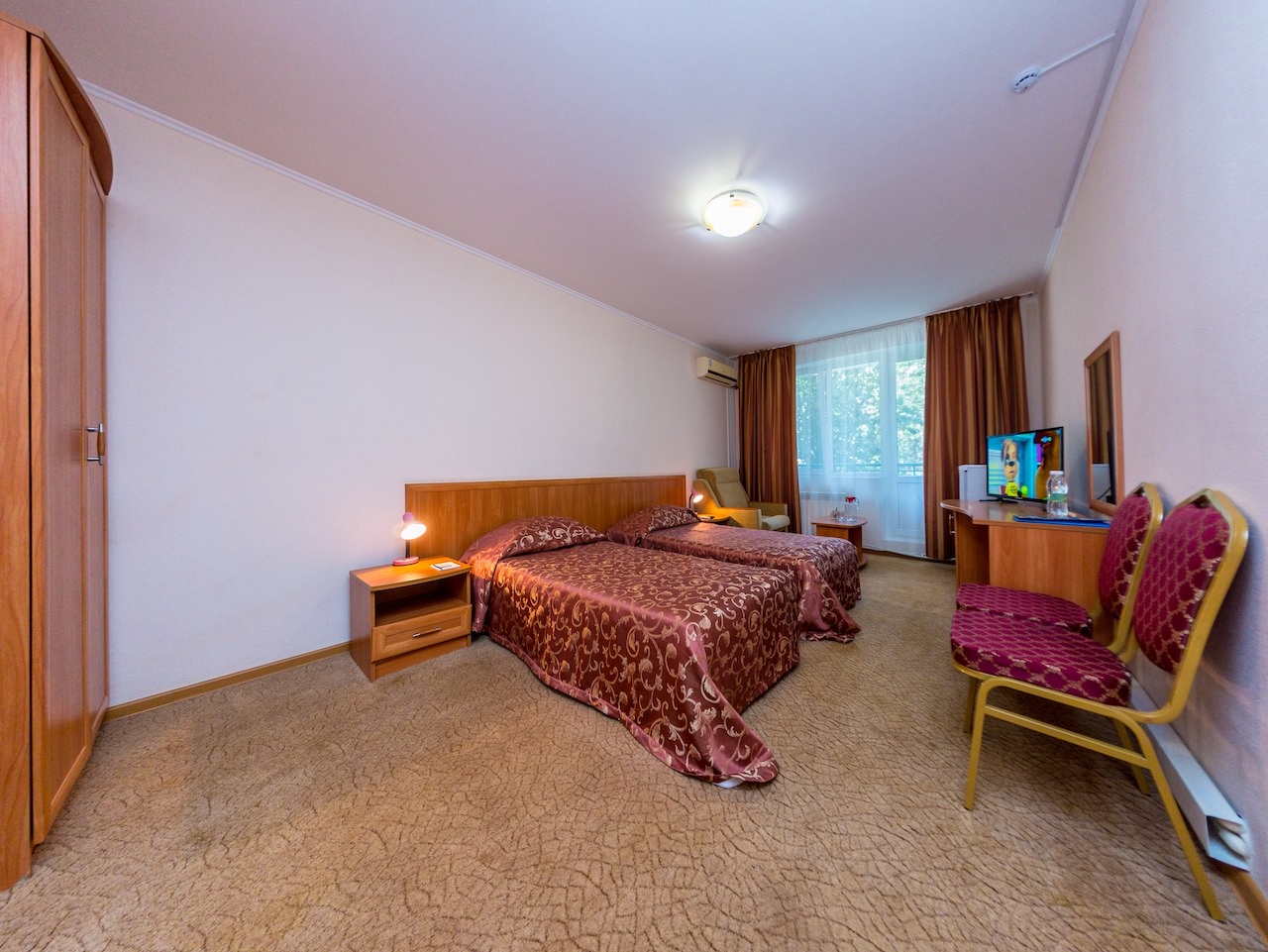 Современный, полностью реставрированный жилой фонд санатория способен единовременно вместить до 1000 человек. Гостей ожидают двухместные и четырехместные номера разных категорий. Номера полностью оборудованы и оснащены сплит-системой, телевизором, холодильником, санузлом с душевой кабинкой и набором косметических принадлежностей.