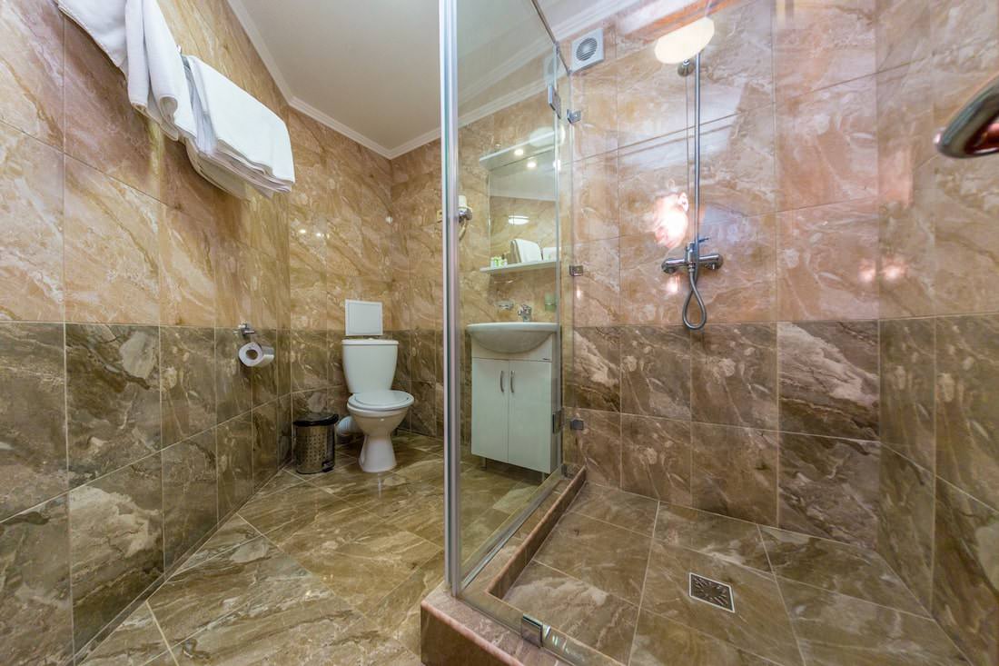 Полный санузел с душевой кабиной, с набором туалетных принадлежностей.